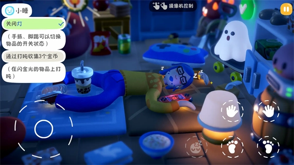 2、完成各种荒诞的日常任务,当体力值变为负数时,角色会呼出疲惫泡泡,一旦碰触过多就会立刻陷入睡眠状态,所以需要一边完成找钥匙、搬物品这类任务,一边努力保持清醒状态。