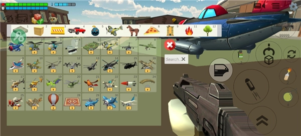 4、购买进入地图的权限后,点击左上角的方块选项,就能选择你所购买的飞机等资源。