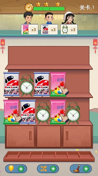 可以通过三消玩法获取用于上架的物品,并且随着关卡的不断推进,三消的难度也会逐渐增加。