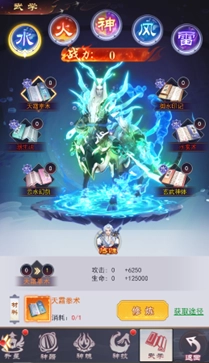 神将武学,神将可以通过学习相应的技能书来领悟技能,提升战力,当对应属性的全部武学达到规定的阶级,觉醒神将天赋技能,解封战力。