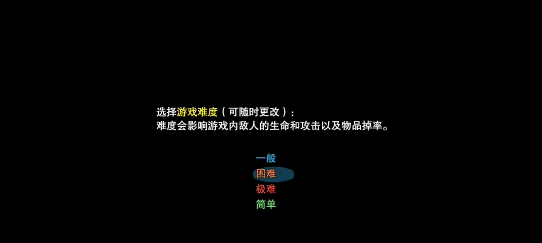 3、选择游戏难度,有一般、困难、极难、简单四个选择