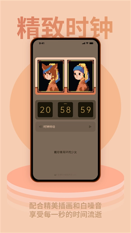 3.每一款主题时钟都配有专属的精致像素插画,在使用时钟的过程中,能感受到色彩与时间交织的独特氛围。