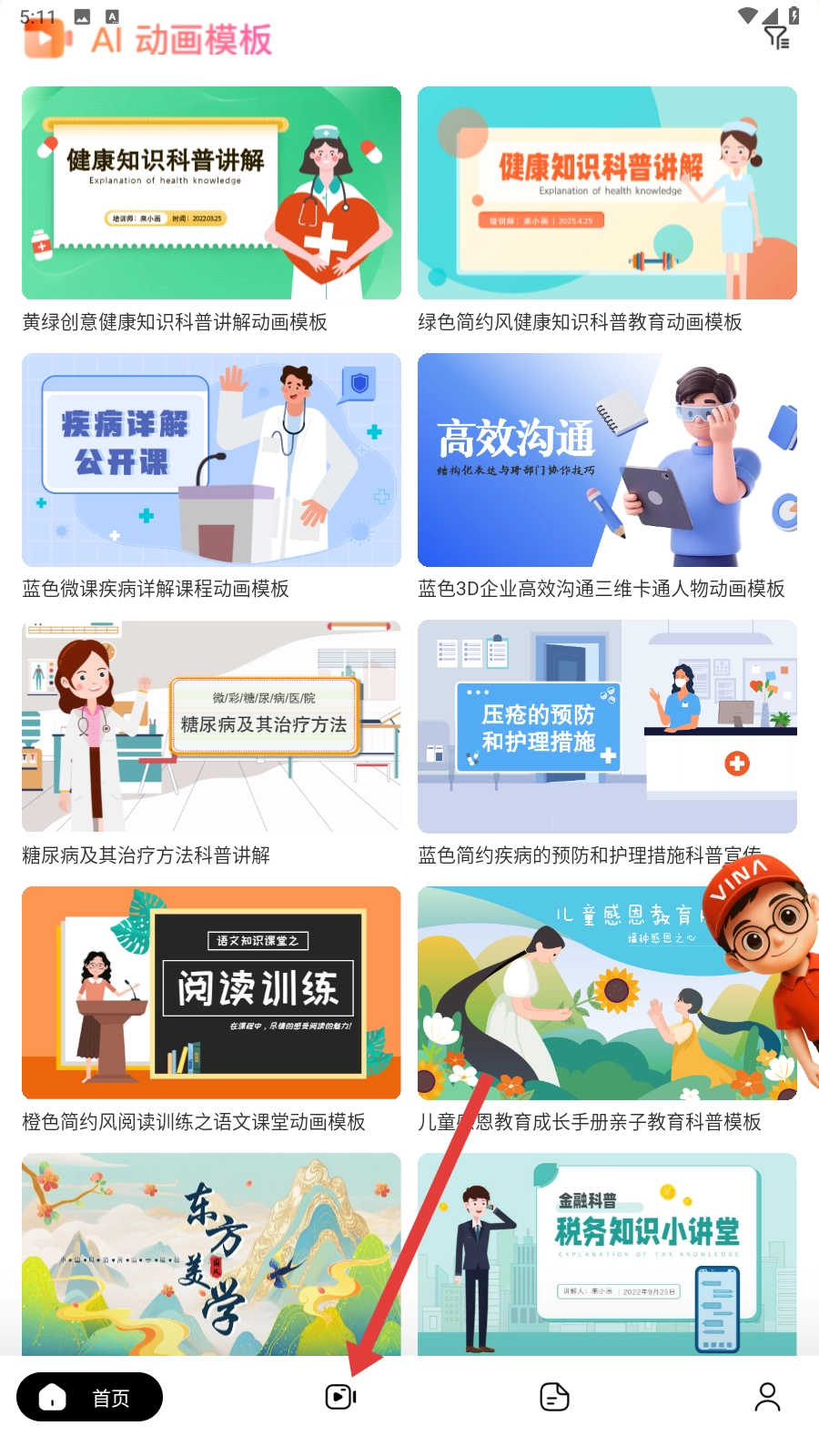 打开应用进入首页后,向下滑动页面即可浏览不同场景分类下的模板;要是没找到想要的模板,你可以向左滑动分类栏,进入【更多模板】页面,然后选择【模板中心】继续查找。