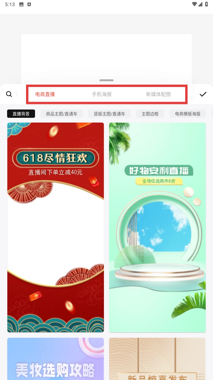 进入创作界面后,你可以根据自身需求,从【电商直播】这类模板分类里挑选,找到契合的创作场景。