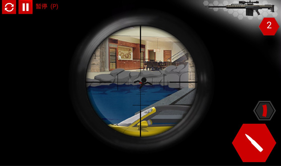 等到目标走到两道玻璃门的中间时,开枪射击,不能打破玻璃,会吸引阳台保安的注意;