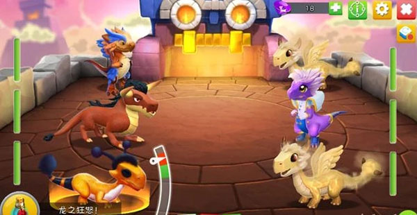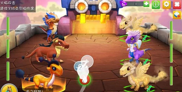战斗场景生动活泼,技能特效绚丽多彩。龙在战场上释放技能,光影交错,营造出欢快又激烈的战斗氛围。