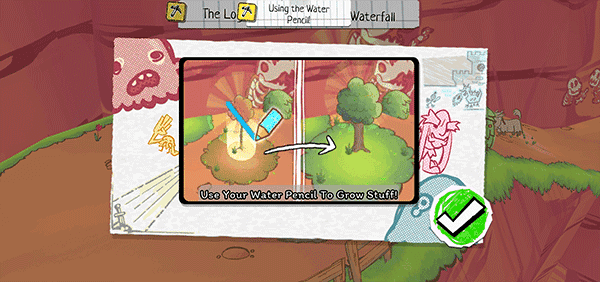 5、游戏中会给你一个页面和相关的绘画工具,你可以利用创造出属于自己的作品,开始跟随新手教程,进行冒险闯关。