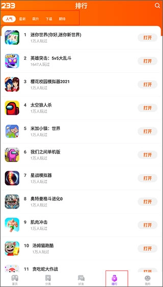 排行榜主要分为人气、最新、飙升、和期待榜,可以轻松找到近期热门游戏,或者预约即将上线的新游戏。
