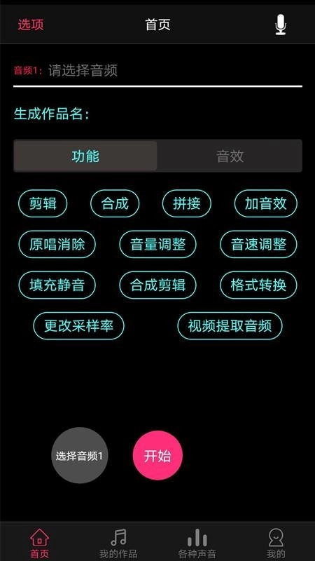 点击首页,用户可以导入自己的本地音频进行编辑