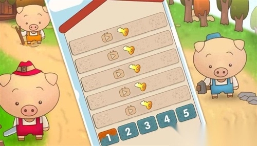 1、小猪分类闯关游戏:仔细观察每个关卡里小猪们的特征,利用拖拽的方法把它们归类到正确的房间里,达成关卡目标后就能成功通关。