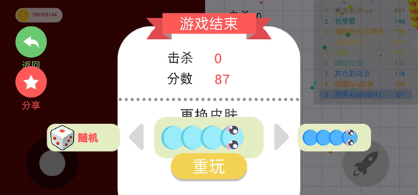 2、小心!蛇头碰到其他贪吃蛇就会死亡,并且产生大量小圆点。