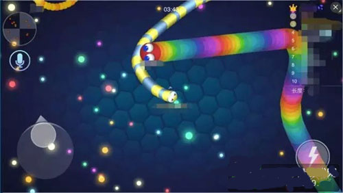 3、长按加速键,用巧妙的走位让蛇身被别人撞上,就可以吃掉他们啦。