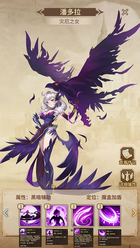 2、潘多拉:暗系辅助,大佬都是拿来当前排坦克用,群体护盾,减益buff(随机)群体回复加攻击(随机)是个狼人。