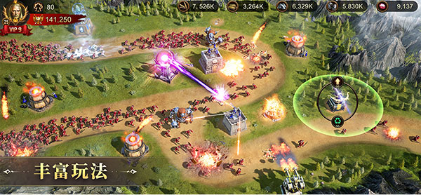 战斗场面震撼逼真,多兵种协同作战,刀光剑影,投石车轰鸣。技能特效绚丽,战场氛围紧张刺激,让玩家仿佛身临其境,感受战争的激烈与残酷。