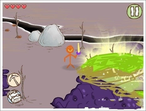 3、下方的树叶画笔就是你的武器,在干枯的树枝上画个树叶,然后就能获得重生,并且还可以消灭即将要出现的各种怪物哦!