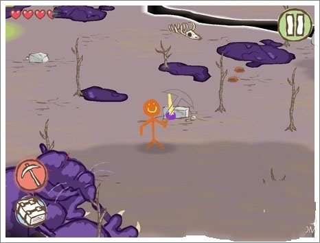 9、继续向前走就可以看到第二只大老鼠怪物,同样一边画树叶一边可以躲避就可以消灭老鼠了,然后我们就可以救出第二个火柴人。