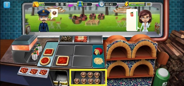 点击面饼,放置对应形状的面饼,注意面饼形状要对应顾客要求哦,不然顾客可不会买账。推荐大家先升级桌面和披萨烤箱,这样我们能够有更多的位置和更快的速度来料理我们的披萨。