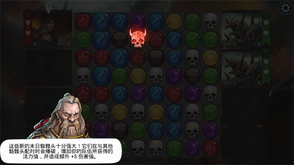 当带有数字的骷髅头配对时会触发爆炸,这不仅能为你的队伍补充法力值,还会带来额外的伤害效果。