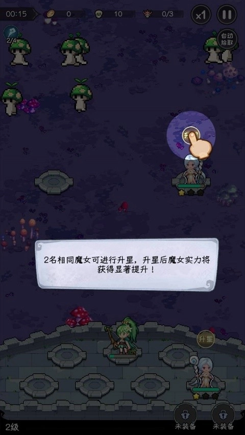 召唤出的魔女能够通过拖动操作来布置阵型。比如把风暴法师移到前排,就能攻击到更多敌人。