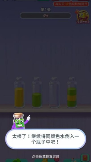 3. 游戏画面清新,水瓶与液体的色彩搭配令人眼前一亮,充满视觉享受。