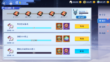 同时也不要忘记完成每日任务以及章节任务。