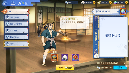 玩家在创建角色以后快速进入游戏,在游戏初期,玩家应专注于推进主线任务,在推进主线的过程中,记得给武将进行升级的同时小伙伴们也别忘记给武将进行进阶,第一章主线完成以后会开启妖具系统(修行)大大增加了小伙伴们的战力提升。