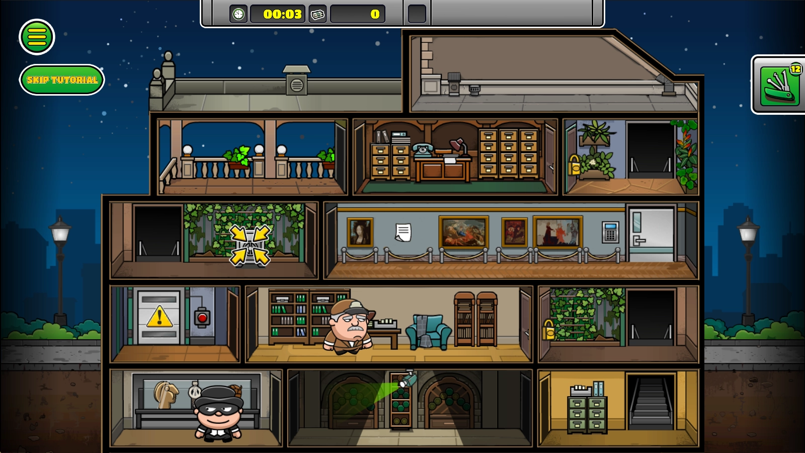 《神偷鲍勃4》(Bob The Robber 4)是一款休闲益智风格的冒险闯关游戏。在游戏里,我们将化身怪盗鲍勃,潜入博物馆、实验室等各类危险场所盗取稀世珍宝,与警察、侦探乃至其他罪犯展开智力较量,最终赢得游戏胜利!相较于单纯的冒险,每一关更像是一场解谜挑战——我们需要精心规划行动路线,巧妙应对摄像头、巡逻守卫等障碍,在不触发警报的情况下顺利接近目标并完成盗取;拿到宝物后也不能掉以轻心,还得在警报响起前成功撤离。整个过程紧张刺激又充满趣味,需要你足够细心才能完成每一次挑战!