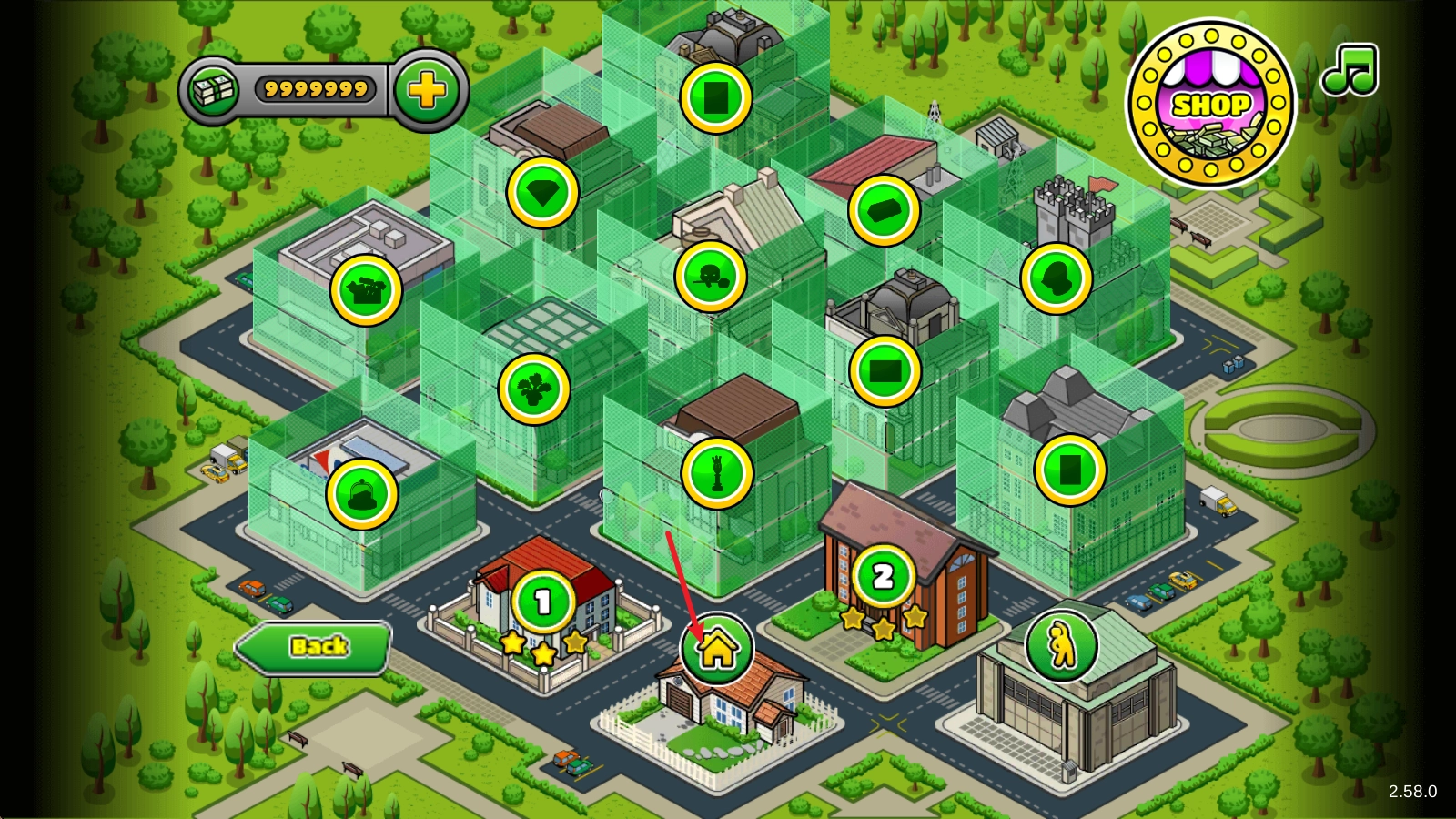 在选关界面找到带有家的图标。