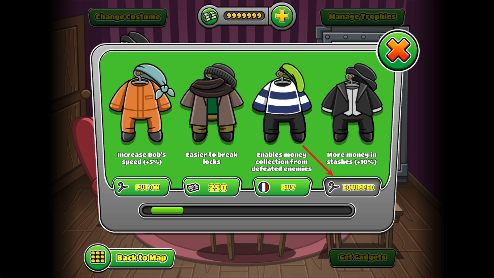 我们还能解锁并购买各式各样的漂亮服装,给鲍勃精心打扮一番,让他以各种个性造型去完成潜行任务。