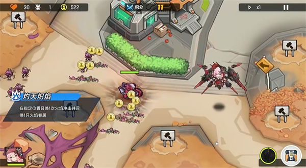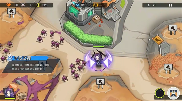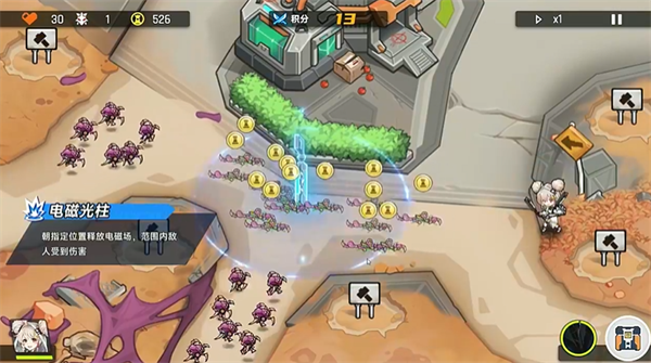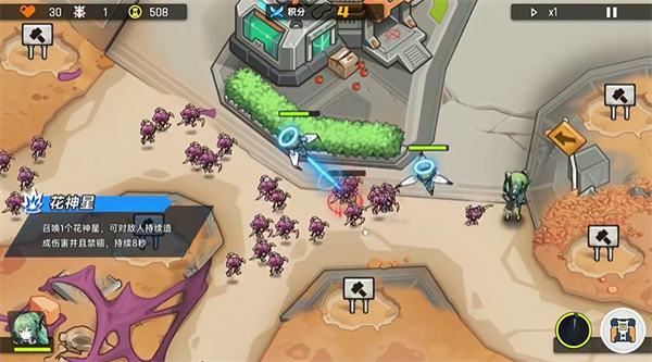 在地图上放置不同的角色来阻挡敌人的攻击。通过合理的布局和战术击败敌人,保护基地。