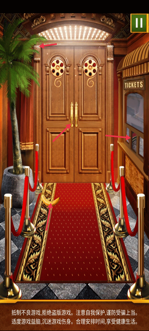 同样根据提示点击右边的窗口拿到门票,进入门里面。