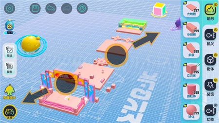 【地形组件】是构成关卡地图的基本组件,通过单指拖拽将地形组件放置在场景中,通过