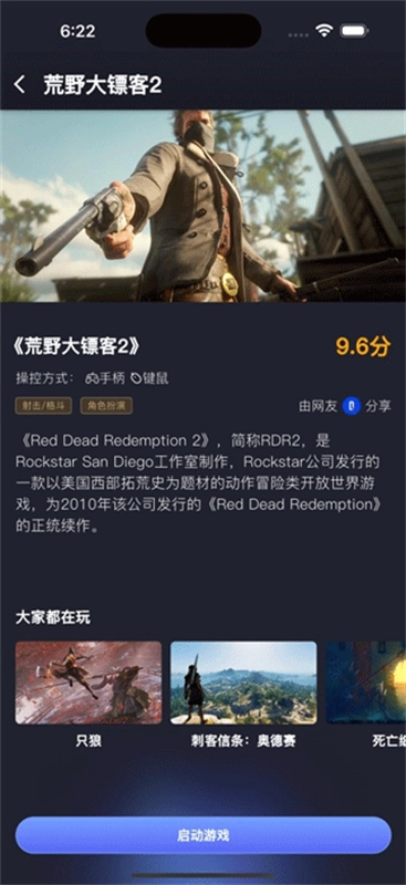 3、找到喜欢的游戏后,进入游戏详情页,点击下方“启动游戏”按钮即可开始畅玩。