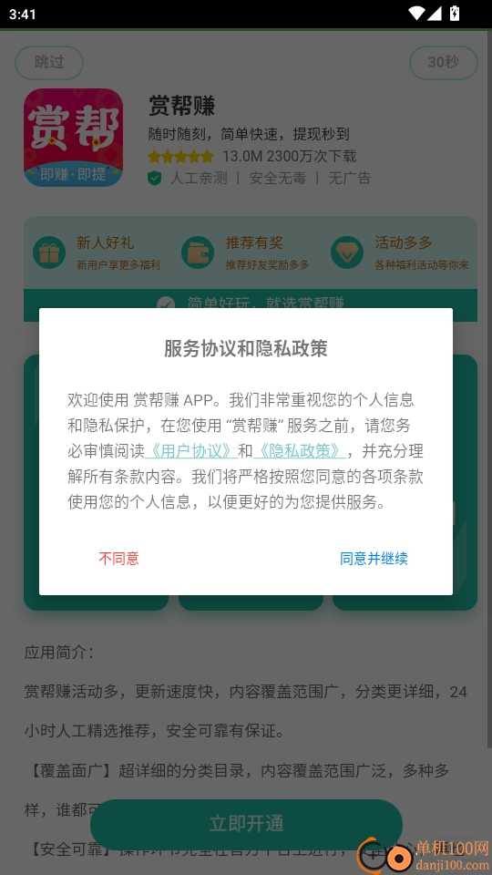 打开软件后,仔细阅读“服务协议与隐私政策”,随后点击“同意并继续”按钮,即可进入软件。