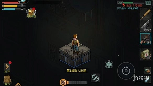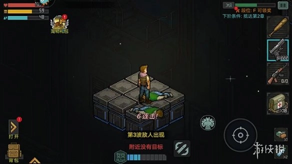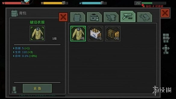 在界面左下角的“背包”功能里,你能够查看并使用目前拥有的药品、装备、子弹之类的物品。