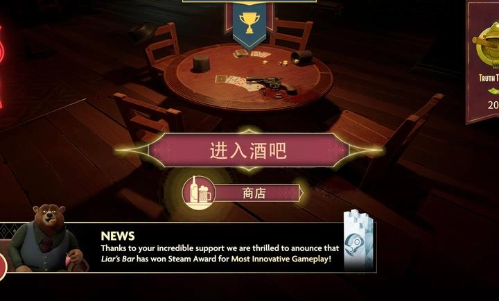 进入游戏后,点击屏幕上方右侧的“LIAR'S DICE”,即可切换至谎言骰子游戏模式。