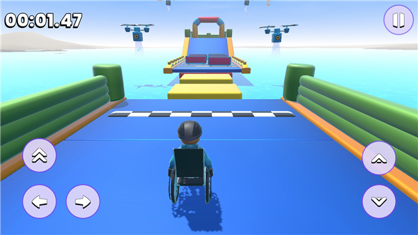 玩家通过单手点击屏幕来控制轮椅的启动、跳跃或抬起前轮以及使用特殊技能。