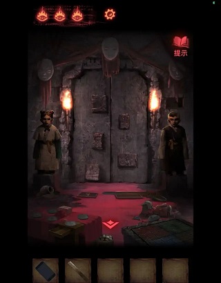 20、在大门处供奉好后拿出手机(此处有个小高能),按照孩童手臂交叉指向的位置一次点击石门上的按钮,要用手机看五。(这里不清楚顺序固不固定所以没出顺序)