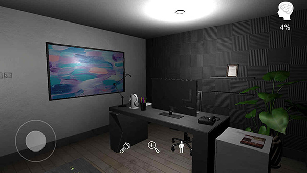 1、游戏出生地在陈加的办公室中,可以移动、开关手电筒、放大查看、站立蹲下、调整视角,并且获得线索会有“思绪”产生;