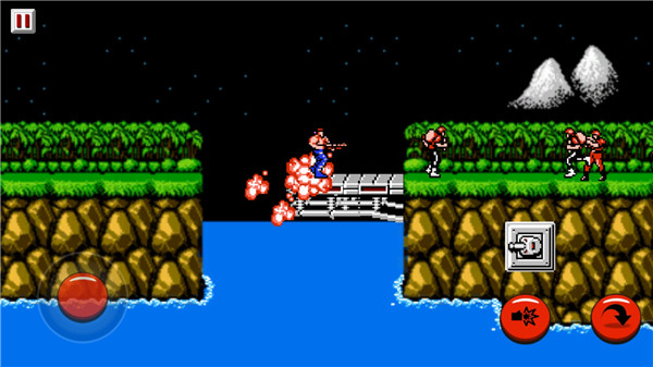 玩家操控角色在横向卷轴的关卡中前进,使用方向键移动,通过射击键和跳跃键消灭沿途的各种敌人与炮台。