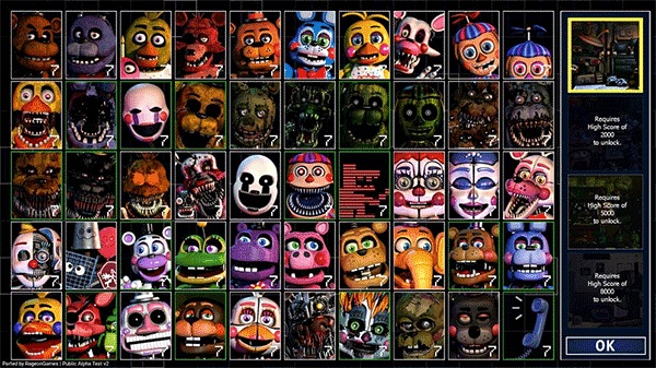 1、游戏中,你可以选择接近50个玩具熊的来进行七天五夜的生存。