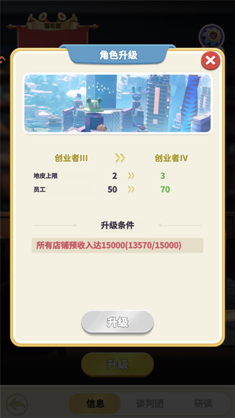 8、当玩家的店铺达到一定的收入即可升级你的等级。