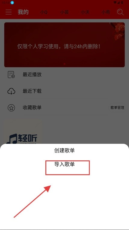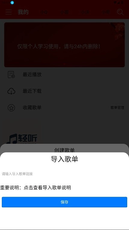 4、支持用户把其他音乐软件的歌单链接复制到本软件内,进而实现收听该歌单内容的功能。