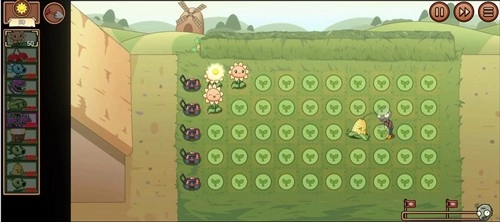 2、每一关选定的植物会陈列在左侧,消耗阳光就能在场景里种植,种植过程中会有图标提示可种植的格子。