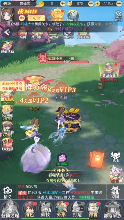 还在为养成发愁?资源狂送,正常游玩就能获得海量奖励,豹子头零充也能玩的很爽!保你修仙之旅一路顺畅。