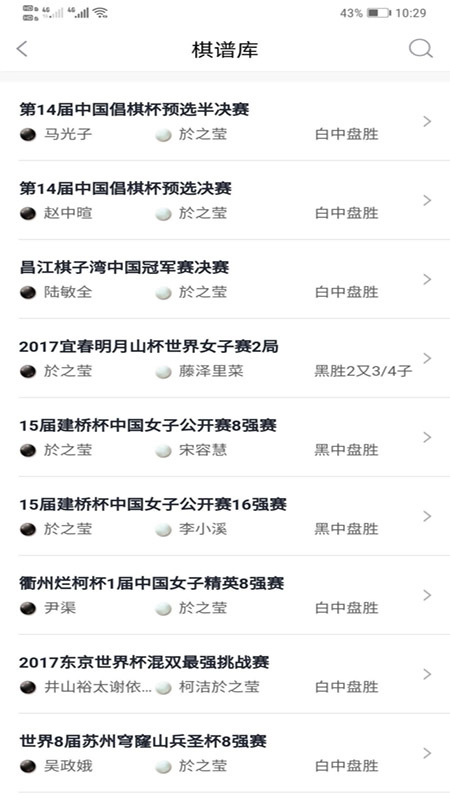 1、拥有选手查询功能,用户可以在线查询各个围棋选手的信息;