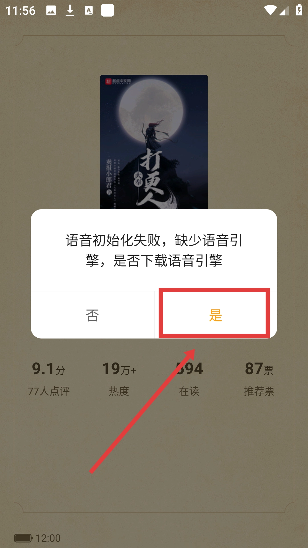 进入阅读界面后,点击【听书】按钮,就能触发语音引擎的相关提示啦。