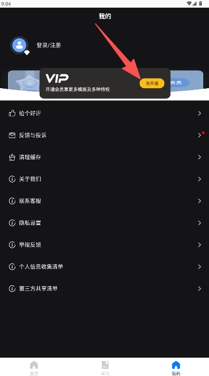 在“我的”页面找到VIP卡片,点击其右侧黄色的“去开通”按钮。