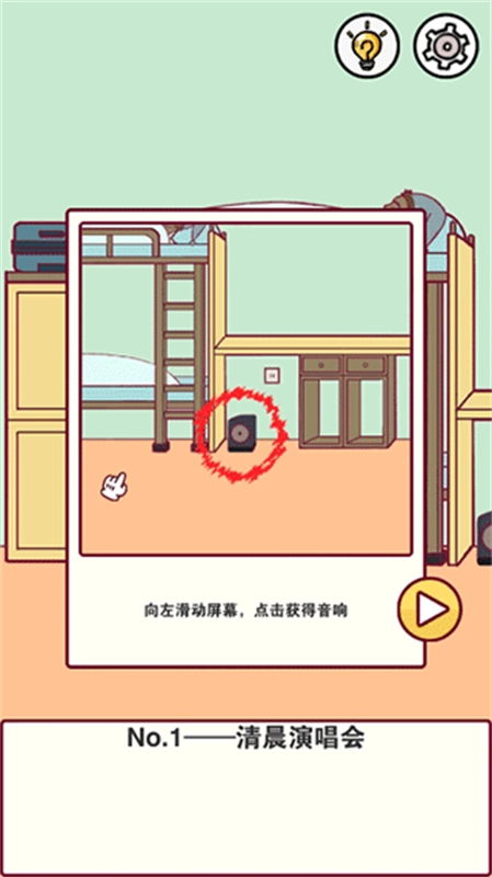 这一关算是比较简单的一关,只需要在右边找到一个音响,然后将音响接在手机上就可以过关了。