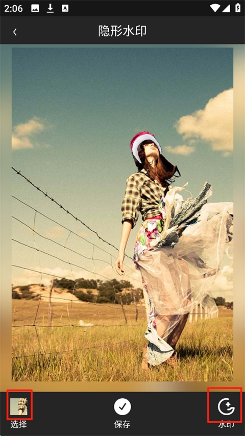 3、点击图片左下角的“选择”按钮,即可挑选需要添加隐形水印的图片;而在图片右下角,能够选择所需的水印,水印类型丰富多样。